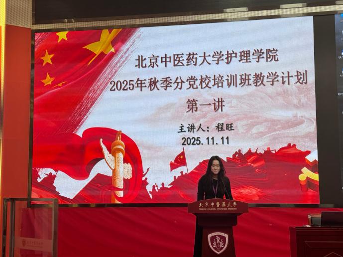 为提高入党积极分子培养质量,加深其对党的认识,端正入党动机,坚定理想信念,以实际行动向党组织靠拢,护理学院举办 2025年秋季分党校培训班。2025年11月11日,培训班第一期理论讲座于北京中医药大学良乡校区西院综合楼一层报告厅顺利举办。本期讲座由马克思主义学院副院长程旺教授主讲,护理学院辅导员张逸静老师主持,护理学院入党积极分子全程参与学习。