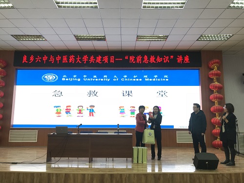 10 月 25 日下午 , 由我院林可可 、 王惠峰等老师带领的 急救培训团 队 前往良乡六中,对 四十余 名 家长及老师 开展急救培训活动。此次急救培训为北京中医药大学与房山良乡六中的共建项目,旨在提高家长及老师的急救意识和急救知识,提高针对突发状况时的应对和处理能力 。
